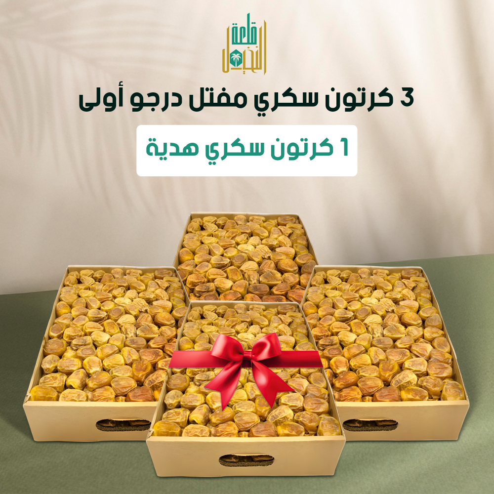 احصل على 3 كراتين سكرى درجة أولى فقط بسعر 174 ريال سعودي. عرض مميز يشمل 1 كرتون سكرى هدية. فرصة لا تفوت، اطلب الآن!