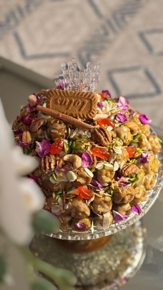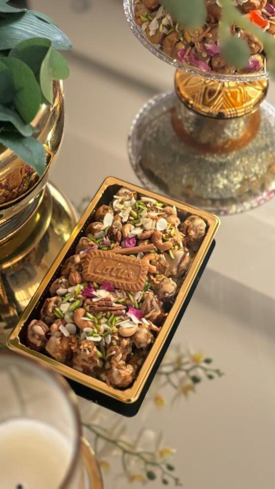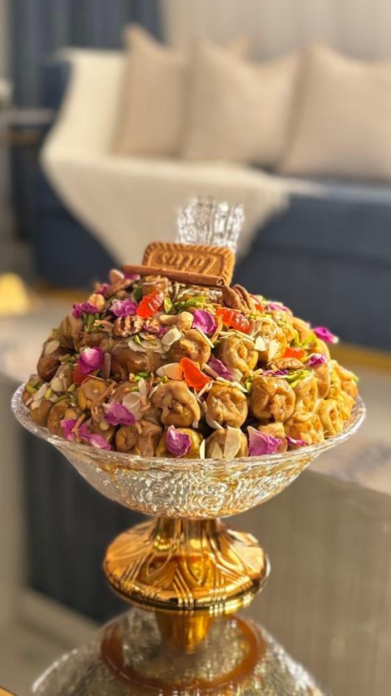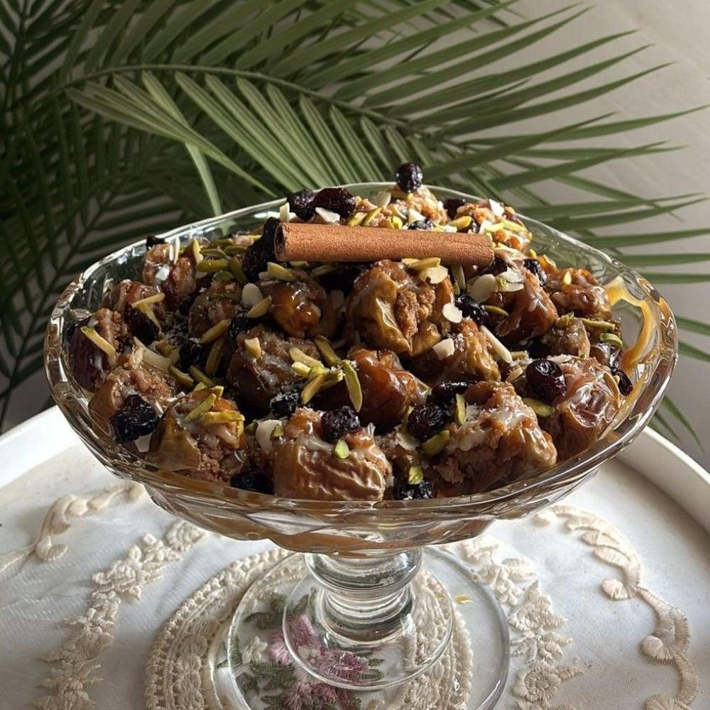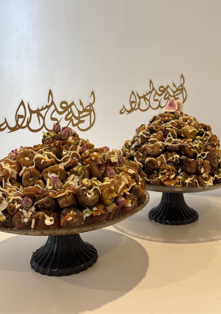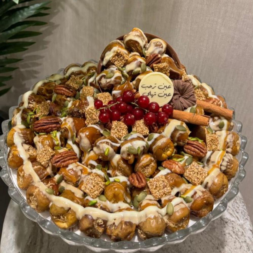 تمر سكري مفتل محشي بالوز والمكسرات ورشة الطحينة يقدم للمناسبات والتقديمات