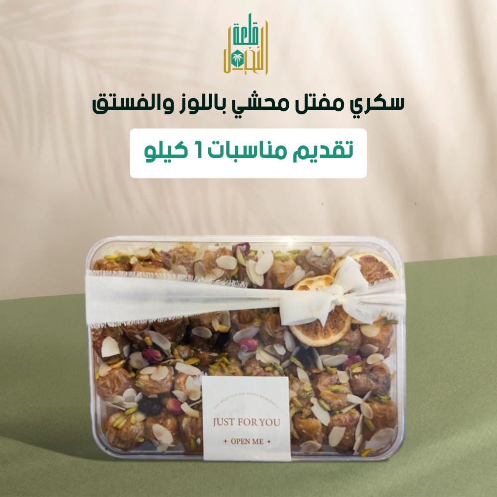 تمر سكري مفتل محشي باللوز والفستق هو الاختيار المثالي للمناسبات والتقديمات الفاخرة. يتميز بطعمه الرائع وحباته الممتلئة بالعناصر المغذية مثل اللوز والفستق، مما يجعله خيارًا استثنائيًا للأوقات الخاصة. يعتبر من التمور الفاخرة التي تضيف لمسة من الفخامة على أي مناسبة بفضل مكوناته المميزة مثل الفواكه المجففة واللوز الأبيض، مما يخلق مزيجًا رائعًا من النكهات.