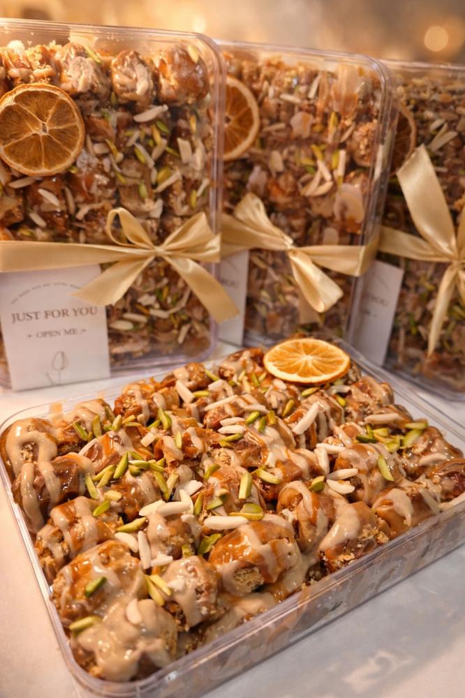 تمر سكري مفتل محشي بالوز والمكسرات ورشة الطحينة يقدم للمناسبات والتقديمات